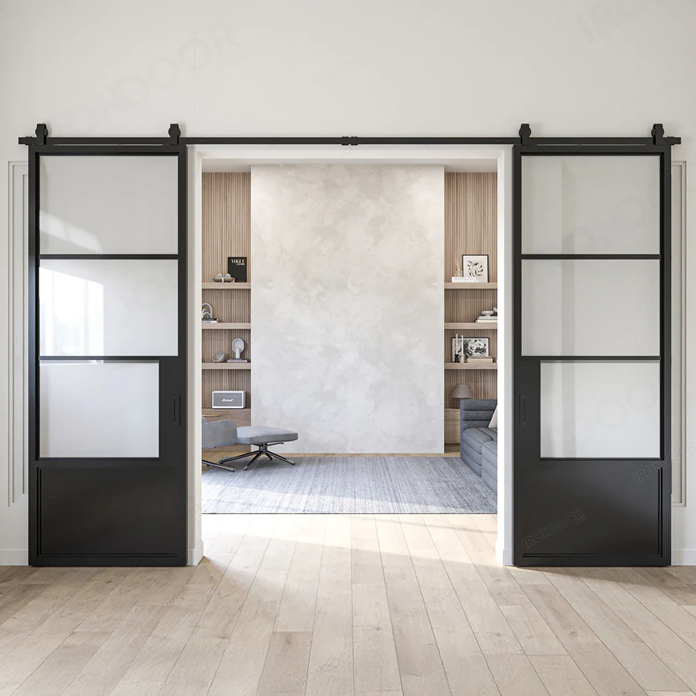 Featuring a minimalist design with clean lines and a smooth finish, our steel barn door complements any modern or industrial décor. The heavy-duty hardware and superior craftsmanship guarantee smooth operation and outstanding performance. Each door is finished with a protective coating that not only enhances its look but also guards against corrosion, scratches, and fading.